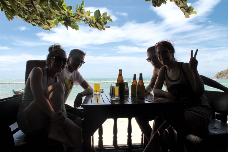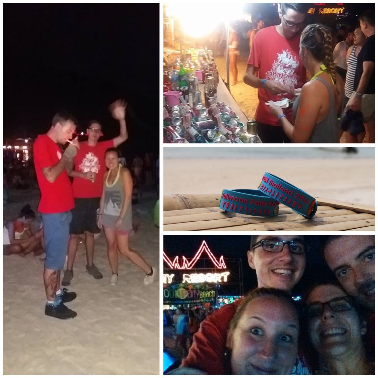 Notre deuxième stop, Koh Phangan, était rempli de jeunes (plus que nous😩) sur le party et de plages relaxantes. Cette île nous a permis de tenter le paddle board à deux (excellente activité pour solidifier un couple😀) et surtout de participer au Full moon party, un événement décadent où l’alcool et le Redbull coulent à flot. Environ 10 000 personnes étaient réunies sur la plage pour l’occasion (un petit party selon les standards – 30 000 personnes s’y retrouvent parfois). Mal de tête du lendemain matin garanti. Nous y avons fait la fête jusqu’aux petites heures avec nos 2 nouveaux amis écossais: Patrick et Dorotka. Mèv a pu aiguiser ses skills de négociation en nous magasinant un taxi pour le retour avec des arguments béton (elle faisait savoir aux chauffeurs rencontrés que nous sommes, malgré tout, assez légers et qu’il n’était pas justifié de nous faire payer si cher. Vous auriez du voir leur tête!).