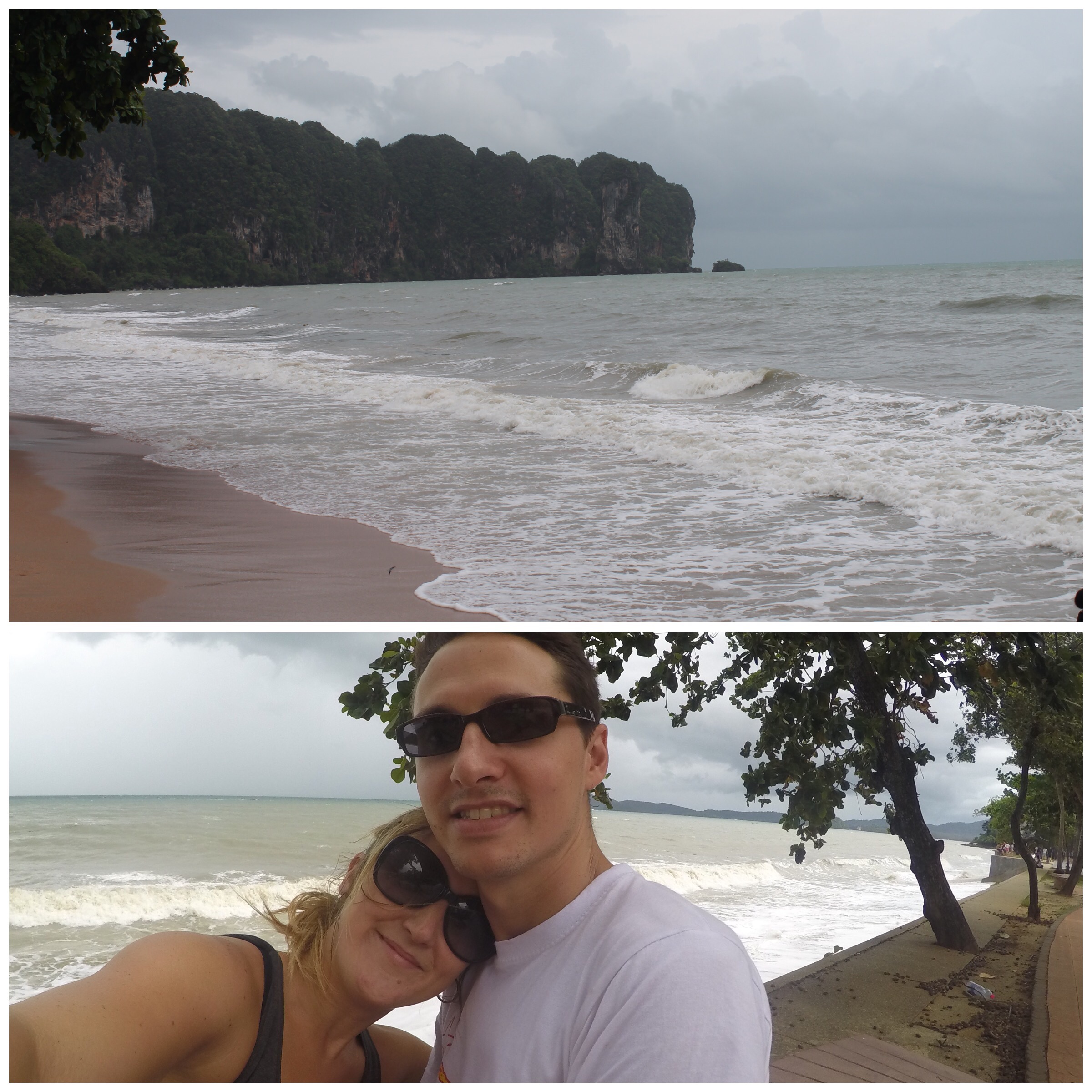 À Krabi, notre stop numéro 3, où nous nous sommes rendus partiellement à bord d’un autobus à 2 étages, partiellement à bord d’une boîte de pickup dotée d’un abri en bois d’œuvre et en toile (ca ressemblait drôlement à un « tambour »), nous avions l’intention de visiter l’iconique île de Ko Phi Phi (lieu où le film The Beach a été tourné). La météo en a décidé autrement puisque nous avons pu constater que la saison des pluies était à ce moment bien entamée. Alors, yoga et massage au menu, nous avons dû nous résoudre à réduire le rythme et se reposer un peu.