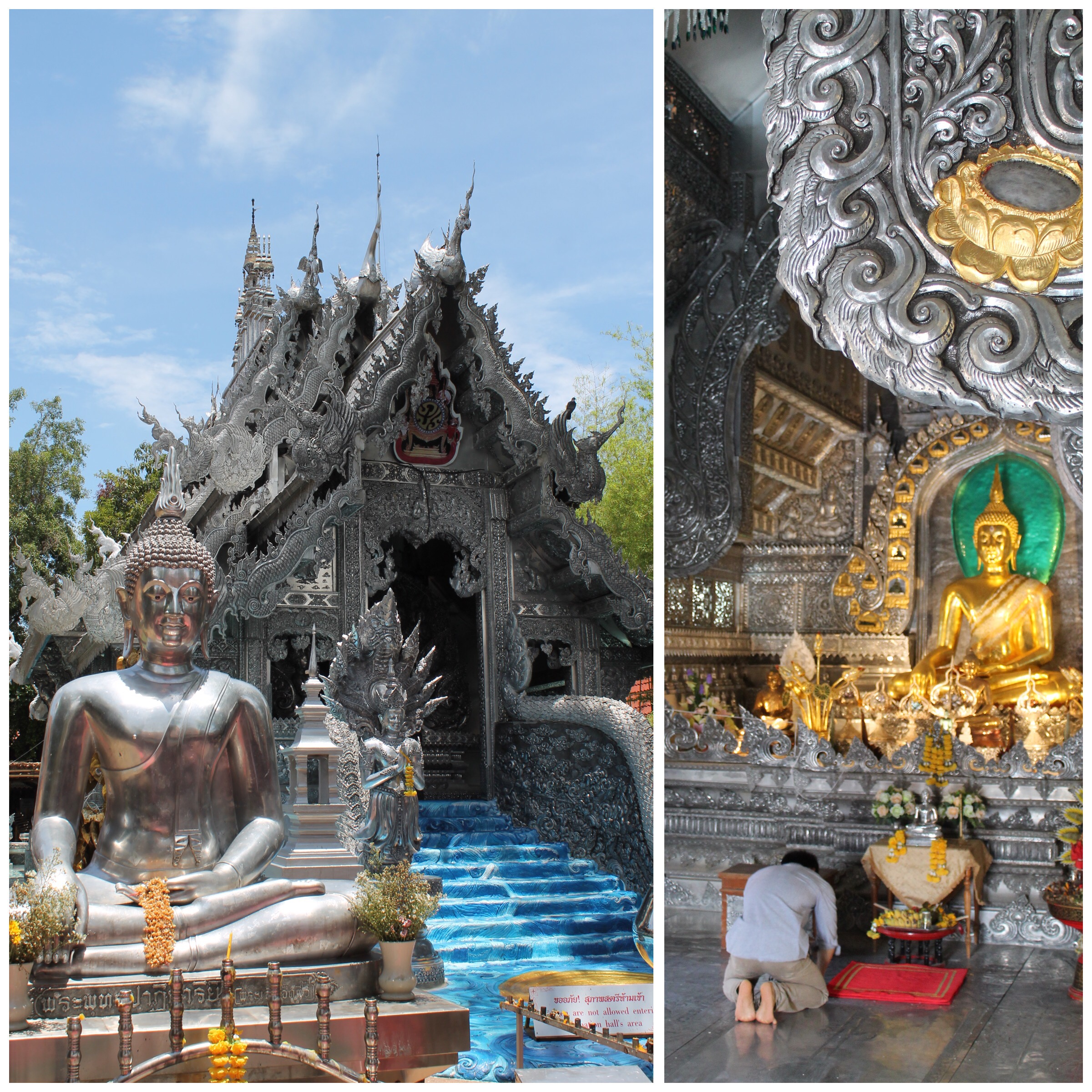 À Wat Umong, un temple tout près de Chiang Mai, nous avons fait une des expériences les plus déstabilisantes de notre vie: une retraite de méditation de 3 jours. Nous nous y sommes d’abord senti comme à la première journée d’un camp de vacances, puisque nous devions dormir dans des bâtiments distincts et que nous ne connaissions personne. Notons ici qu’il est coutume de limiter toute forme de discussion au minimum dans une retraite de ce genre, afin d’éviter toute distraction mentale. Cette consigne n’est pas facile à respecter pour tous (Jul avait plus de facilité avec ce concept)… Nous sommes certainement ressortis grandis de cette expérience.