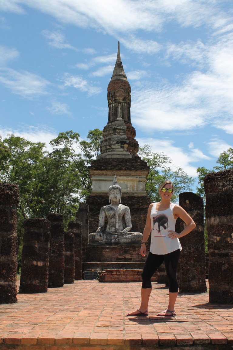 En route pour le retour vers Bangkok, nous nous sommes arrêtés à Sukhothaï, pour y visiter la ville historique, un genre de mini Angkor Wat. À ce point, nous avions vu énormément de bouddhas/temples, mais nous avons tout de même apprécié cette visite que nous avons fait à vélo. Mentionnons la dame qui y vendait de tout dans des ziplocs: tortues, grenouilles, couleuvres, name it – semblerait que relâcher des animaux apporte la chance. Pauvres bêtes!