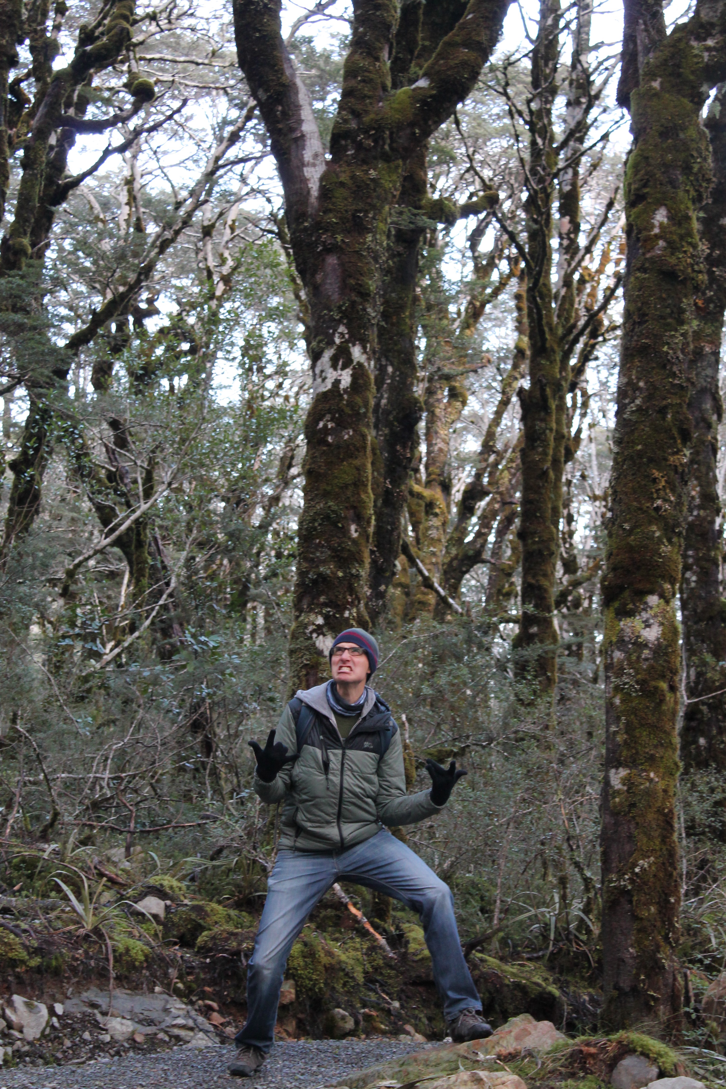 Julien en mode black metal, inspiration du moment à Arthur’s Pass