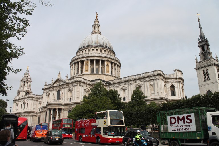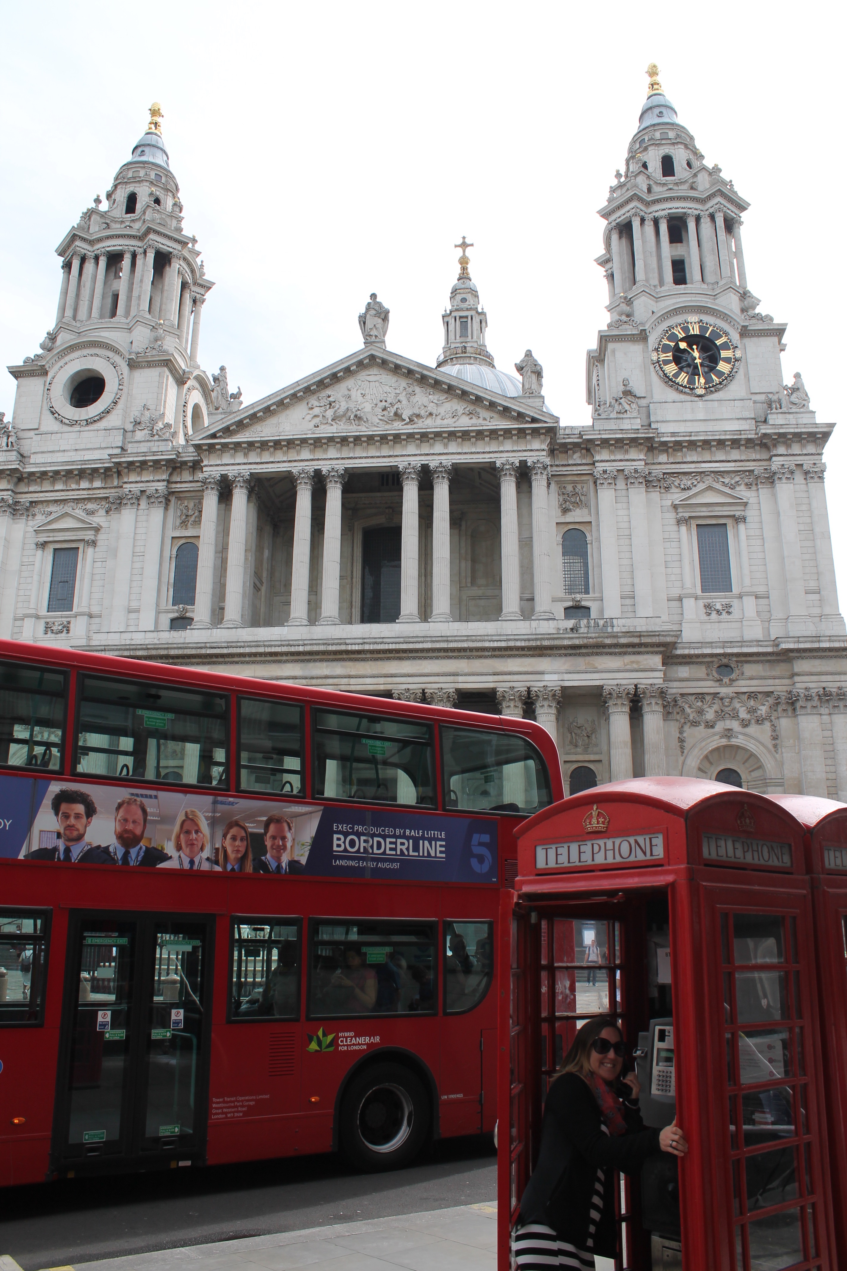 Trois classiques: la Cathédrale St-Paul, un bus rouge à deux étages et une cabine téléphonique 👌🏻