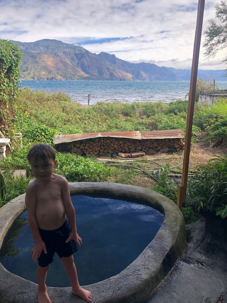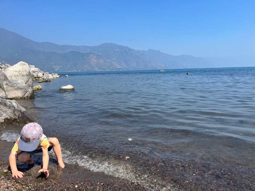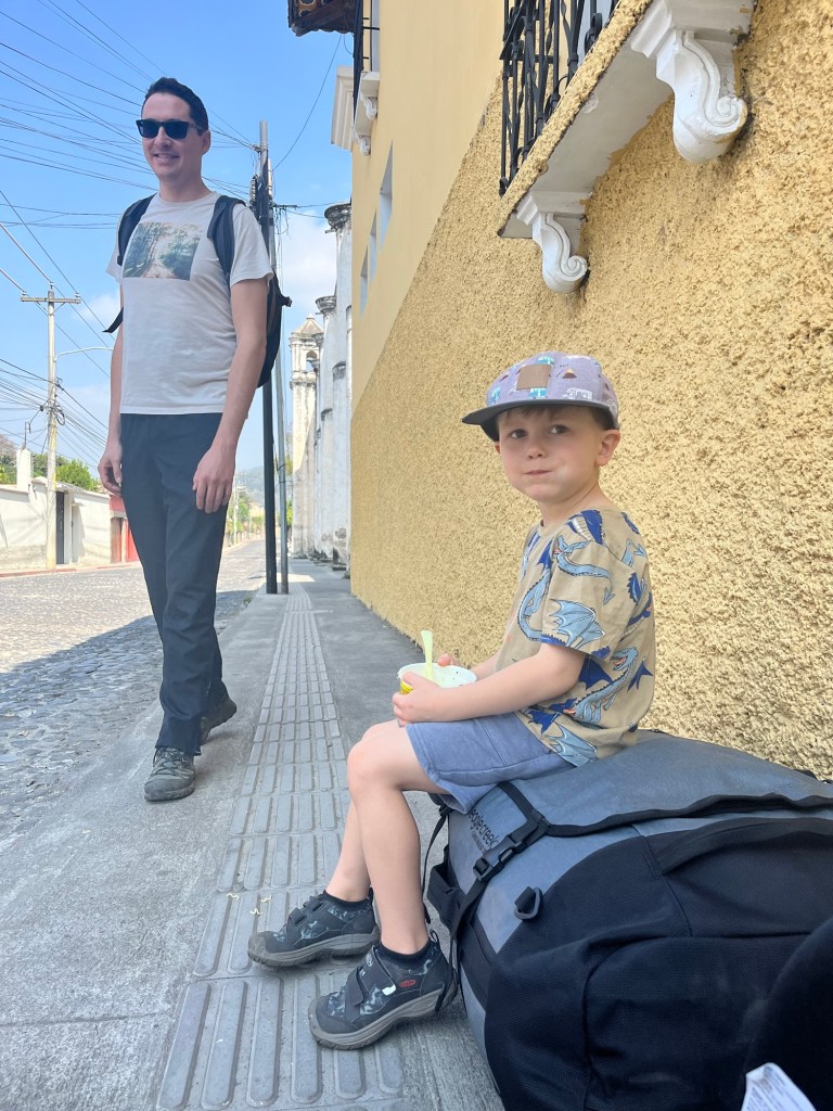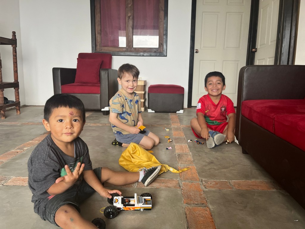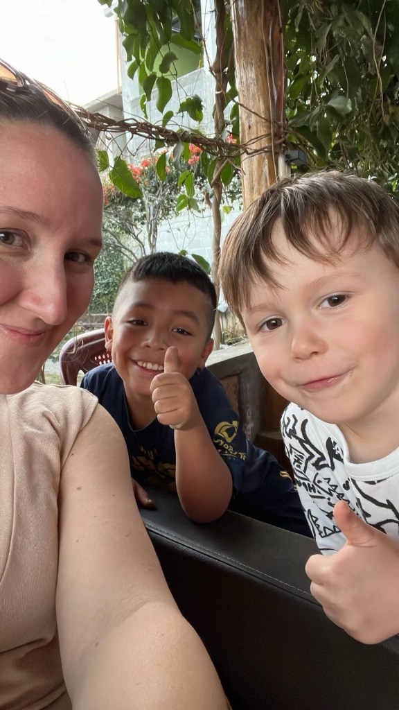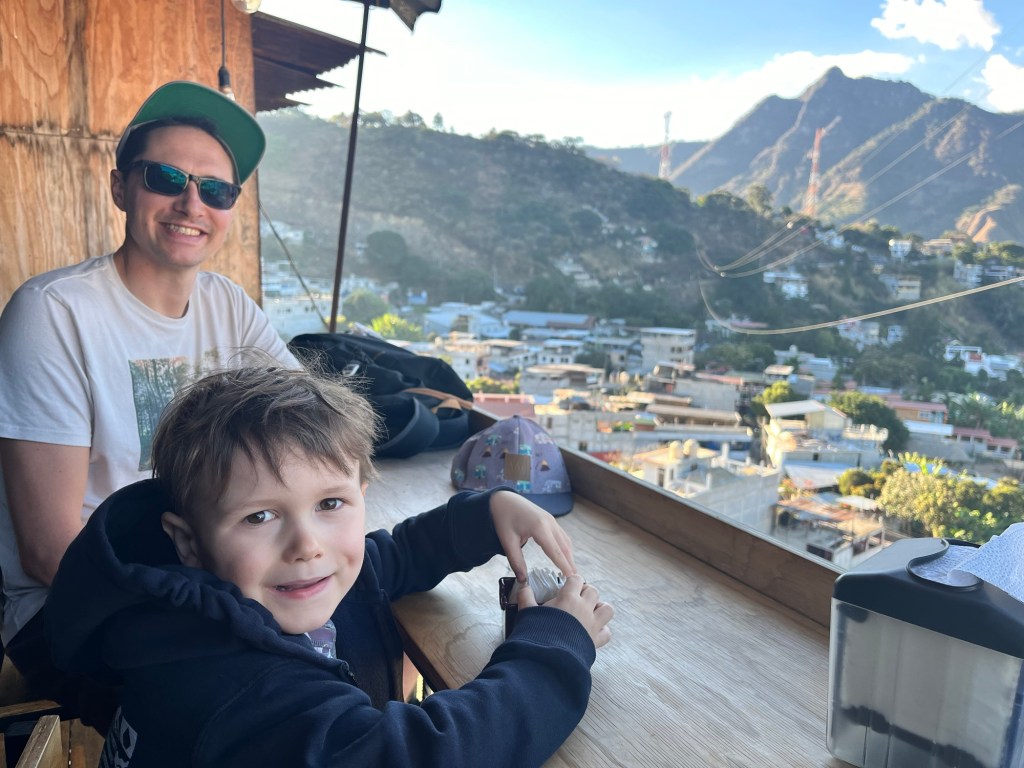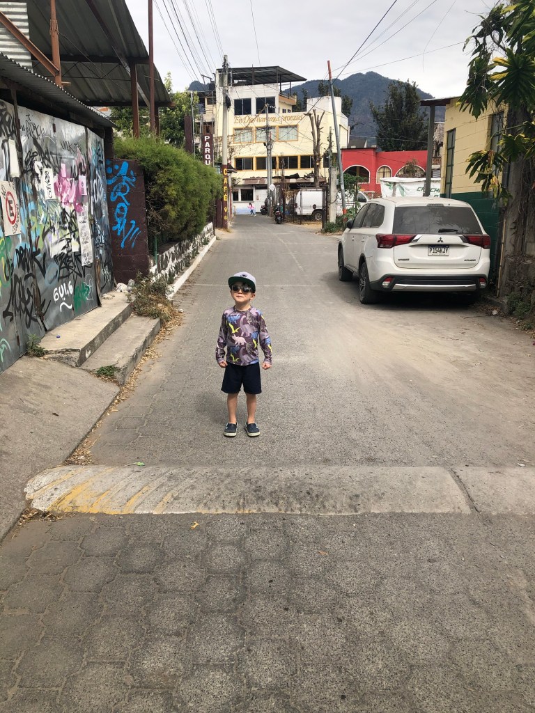 C’est d’ailleurs à San Pedro que nous avons eu notre première rencontre avec notre hôte, Linda, et ses deux bambins, désormais grands amis de Mathias, Antonio (3 ans) et Guillermo (9 ans). Si Mathias nous impressionne beaucoup par sa capacité d’adaptation, nous avons rapidement constaté que l’apprentissage de l’espagnol avec des professeurs ne parlant pas français nécessiterait certains ajustements pour le louveteau. Heureusement, l’équipe de l’école « San Pedro Spanish School » a su faire preuve de flexibilité, et nous avons pu trouver la bonne formule pour tous 😁.