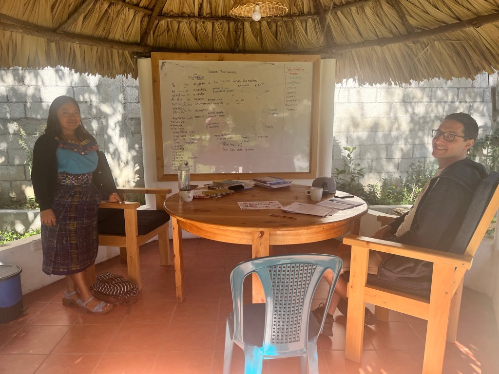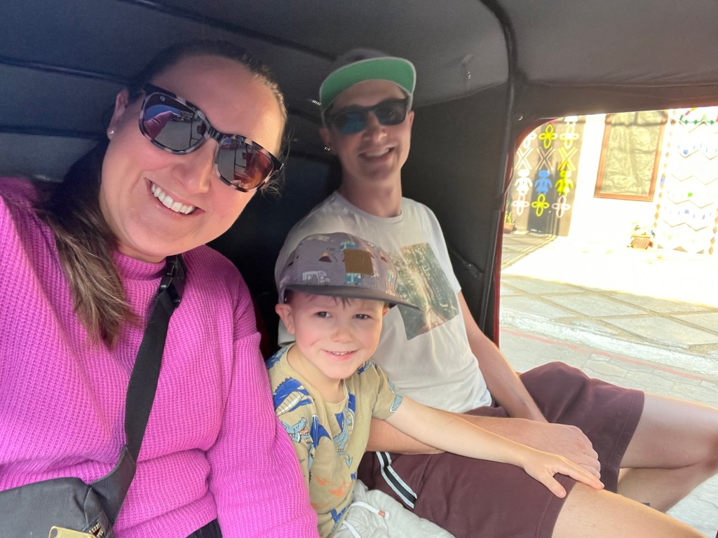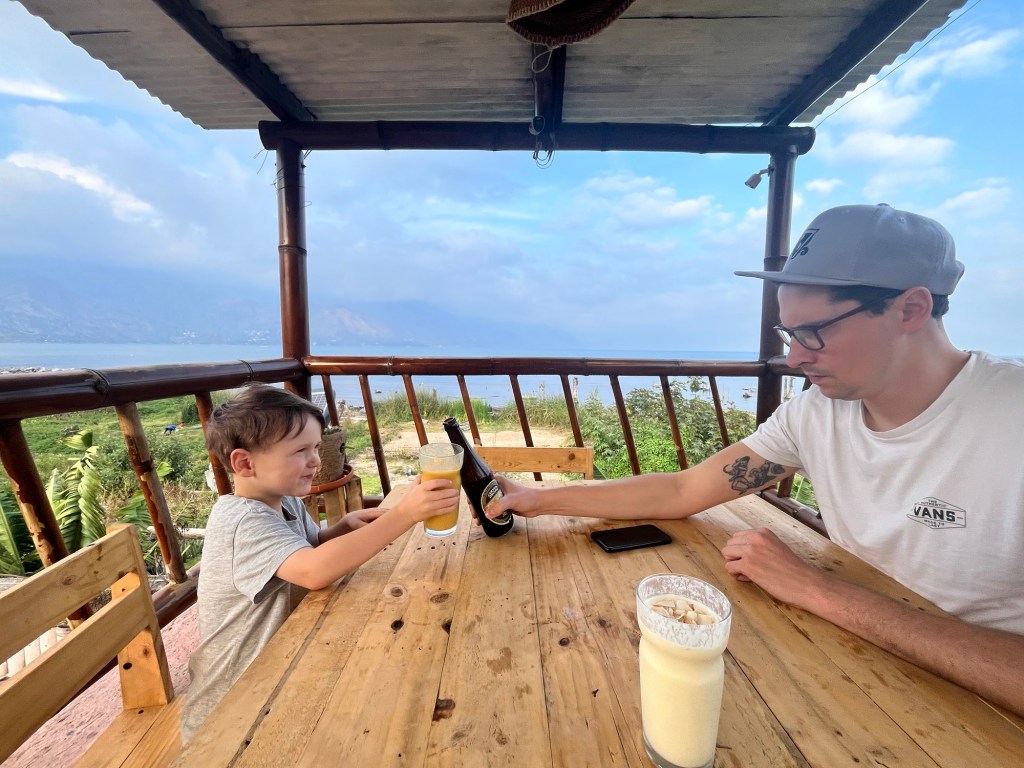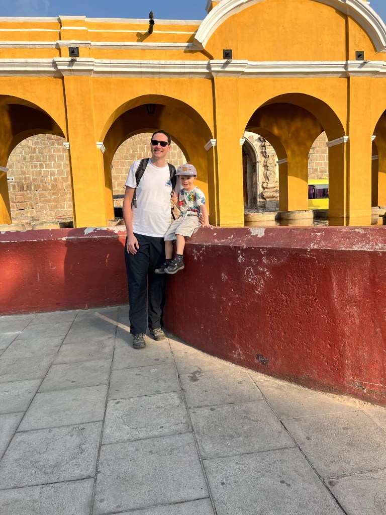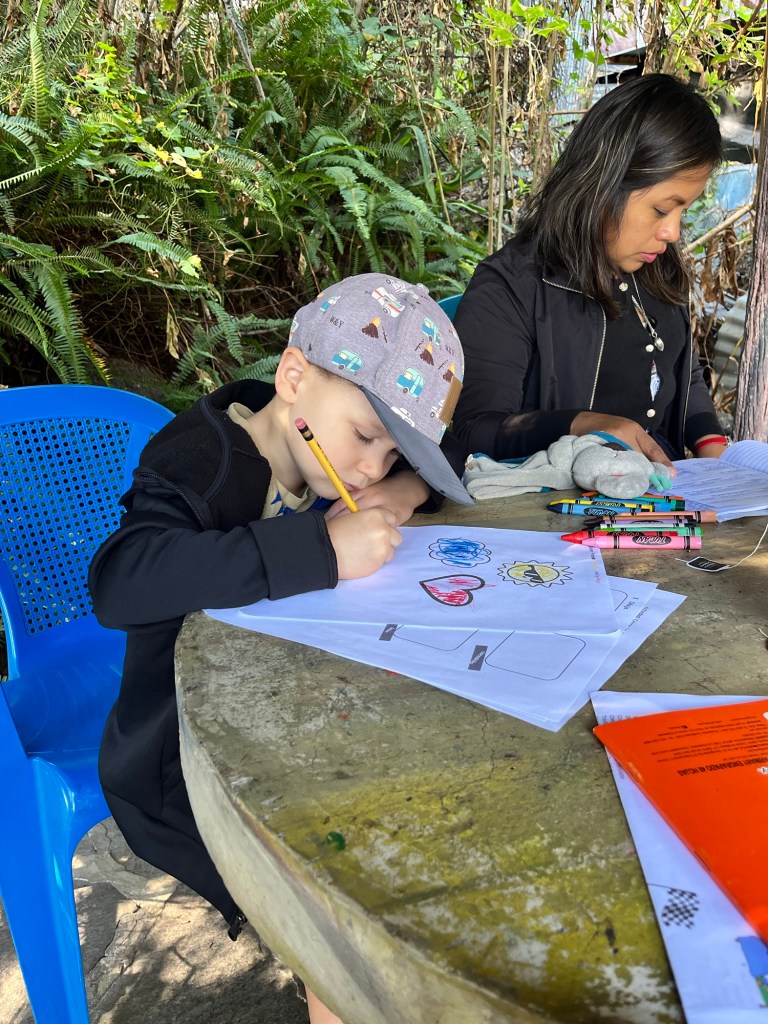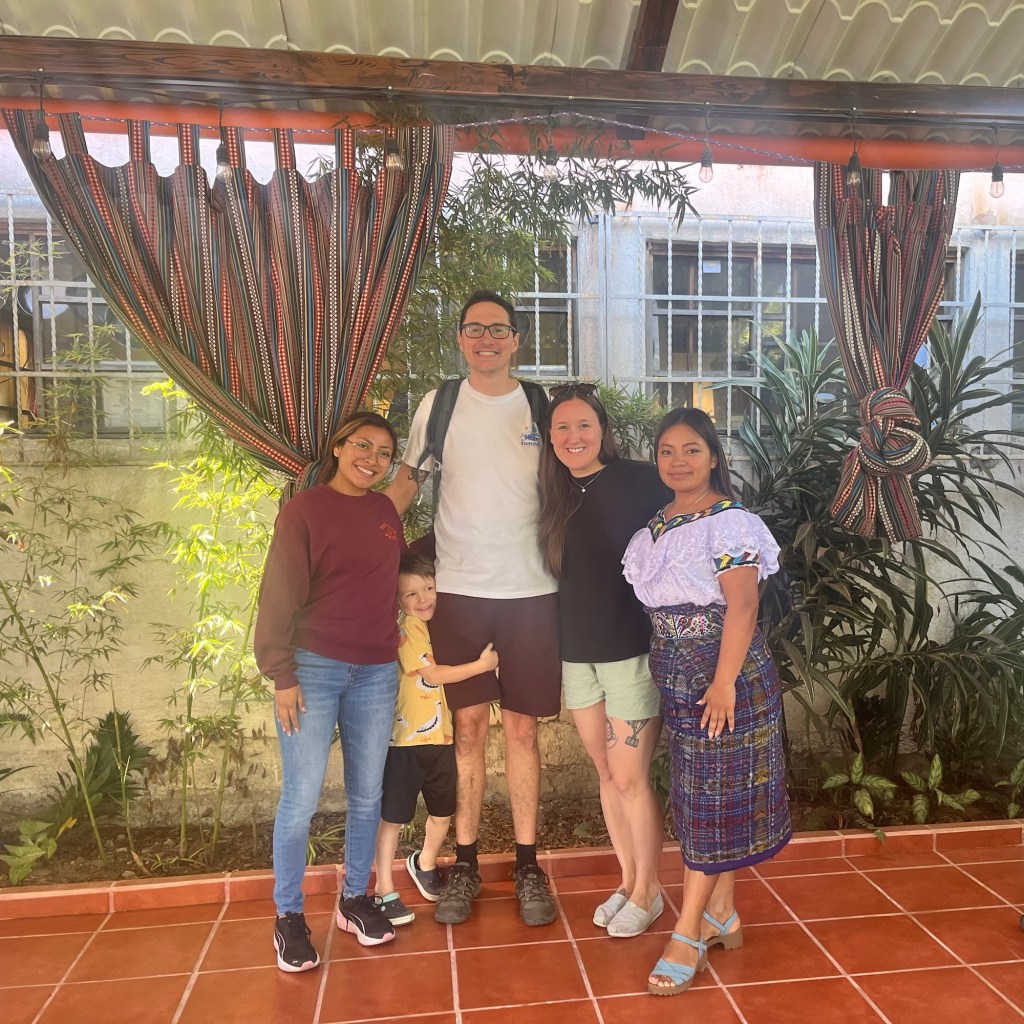 C’est d’ailleurs à San Pedro que nous avons eu notre première rencontre avec notre hôte, Linda, et ses deux bambins, désormais grands amis de Mathias, Antonio (3 ans) et Guillermo (9 ans). Si Mathias nous impressionne beaucoup par sa capacité d’adaptation, nous avons rapidement constaté que l’apprentissage de l’espagnol avec des professeurs ne parlant pas français nécessiterait certains ajustements pour le louveteau. Heureusement, l’équipe de l’école « San Pedro Spanish School » a su faire preuve de flexibilité, et nous avons pu trouver la bonne formule pour tous 😁.