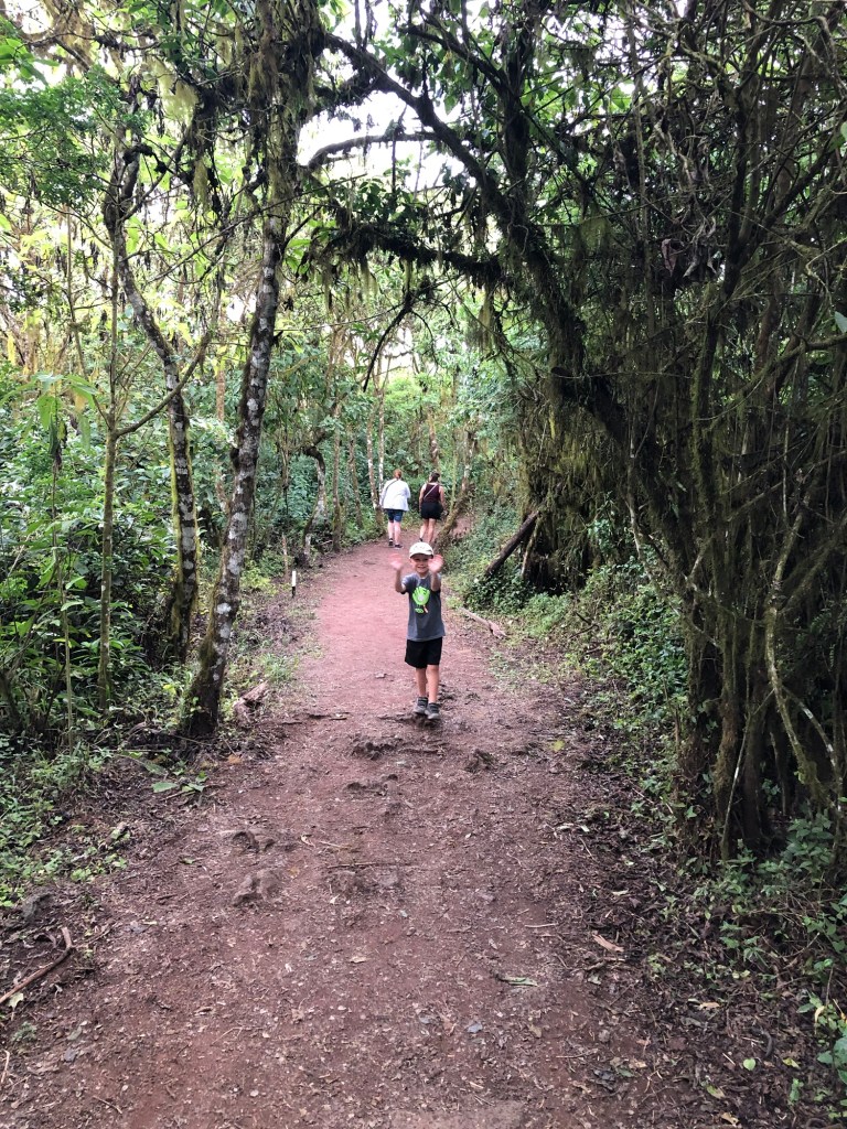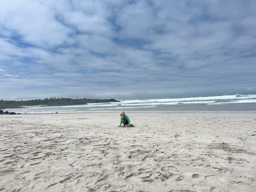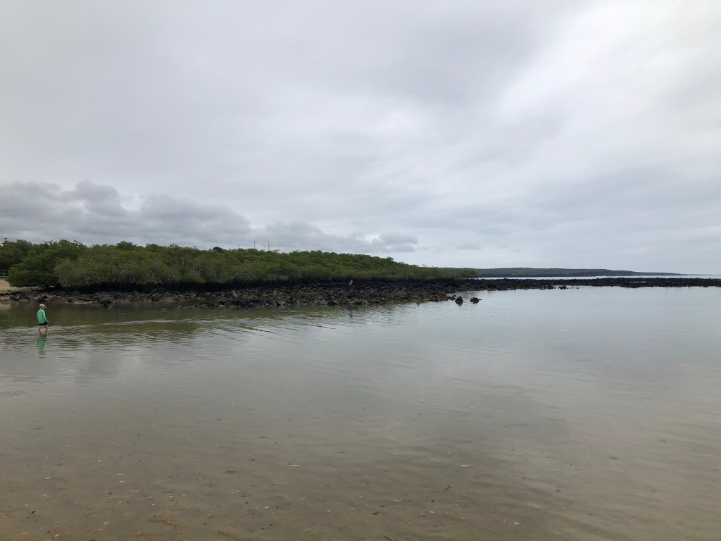 Puisqu’il s’agit d’une des raisons majeures de visiter l’endroit, nous avons ensuite mis le cap sur Tortuga Bay, superbe plage reculée accessible seulement à pied où nous avons pu observer de jolis iguanes en pleine session de natation et de nombreux oiseaux se nourrissant de petits lézards. La marche fut longue et le petit loup a franchement assuré dans le contexte.