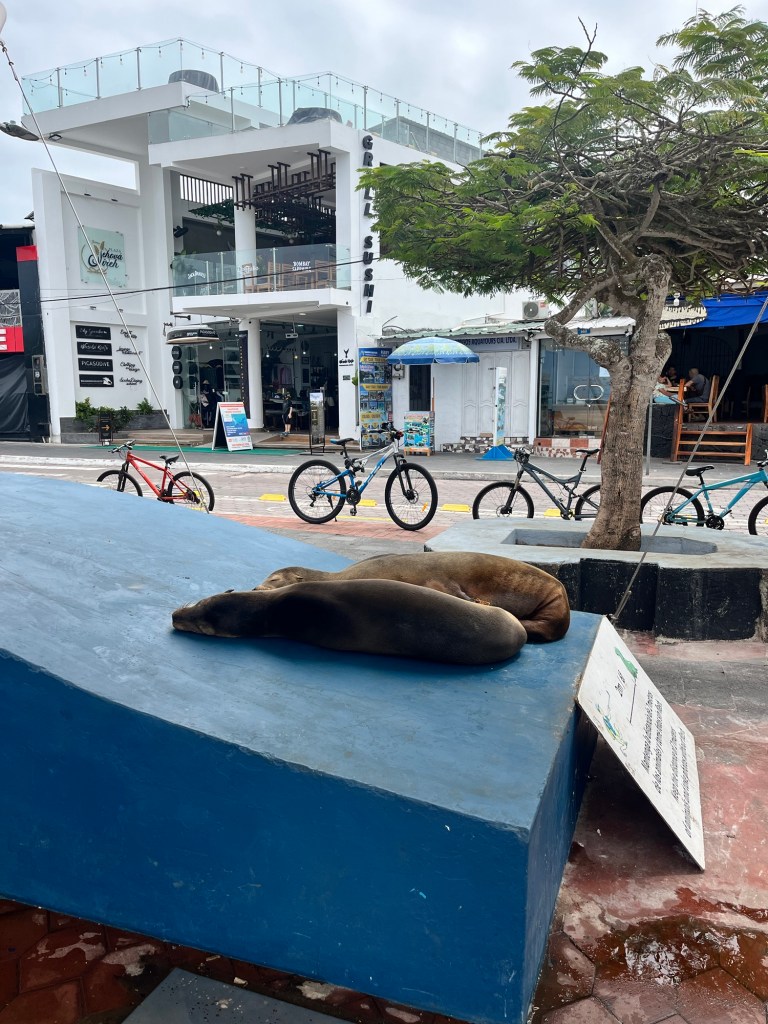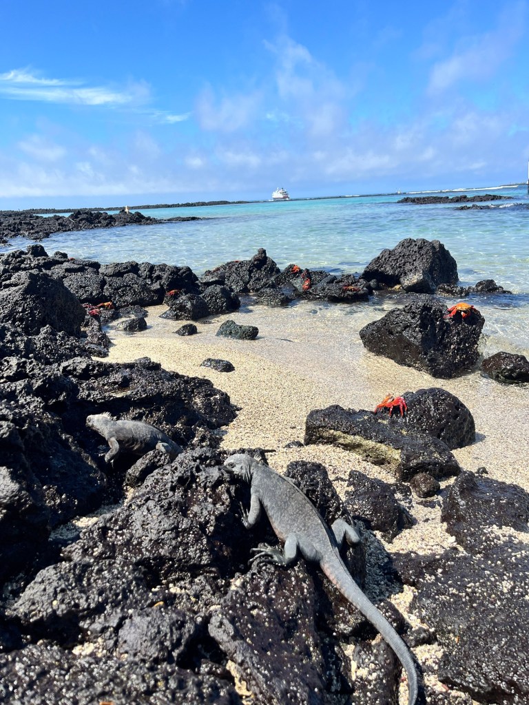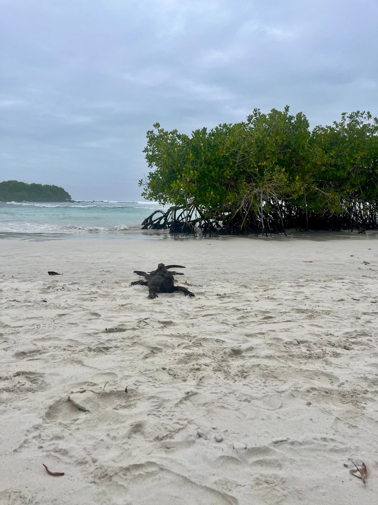Juin 2024 – Le décompte final bien en marche avant le retour au pays du sirop d’érable, la destination que nous avions conservée pour le dessert devait être l’Équateur et ses fabuleuses îles Galápagos 🤩! Après un court passage dans une jolie ferme en banlieue de Quito, nous avons pris un vol pour l’île de Santa Cruz et sa faune incomparable. Énième témoignage de la lente et désorganisée bureaucratie que l’on trouve souvent dans la partie sud de l’hémisphère, nous avons dû successivement faire la file à plusieurs endroits pour se faire diriger ailleurs dans l’aéroport, le temps de payer une taxe et de faire inspecter nos bagages deux fois plutôt qu’une, si bien que nous avons eu bien peur de manquer notre vol 🥵!