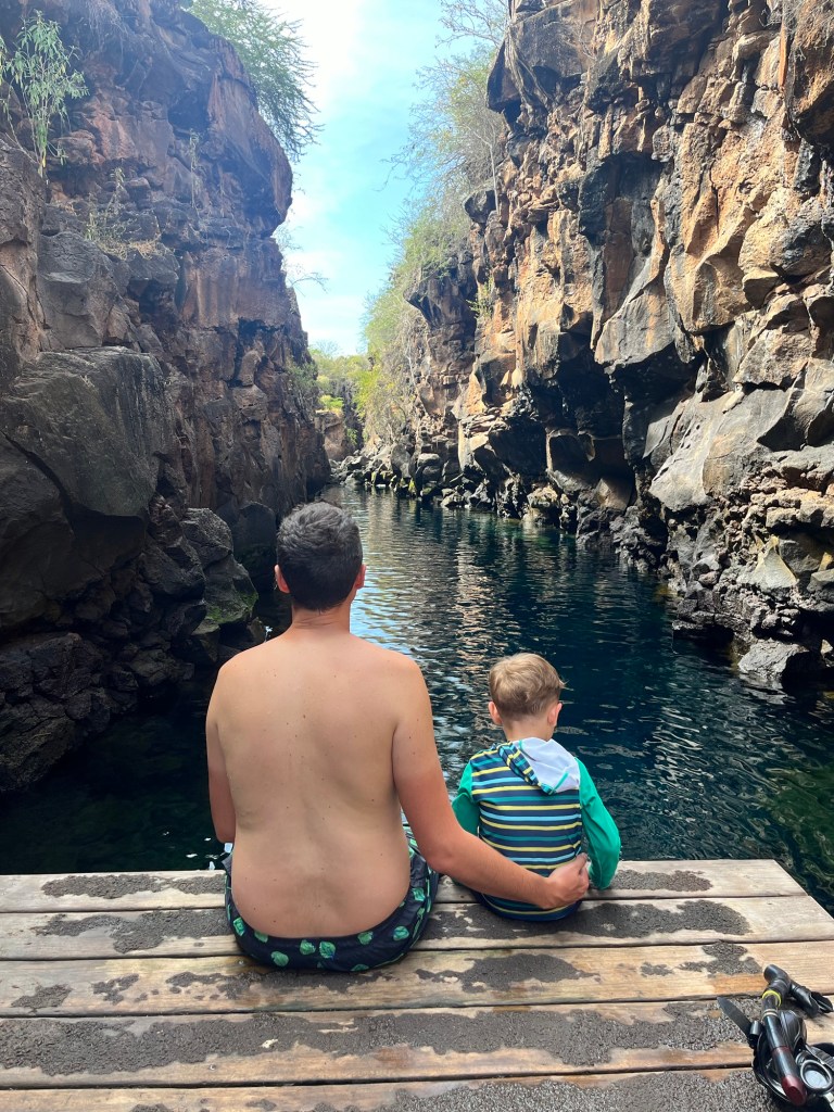 Ne souhaitant pas nous contenter de la vue de cette faune, nous avons ensuite opté pour une visite en bateau de Academy Bay, qui nous a permis de voir les très originaux fous à pieds bleus ❤️, ainsi que différentes raies et requins, en mode snorkeling.